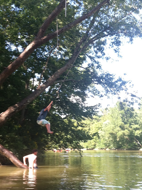 I had seen at least 15 other brave souls climb that tree and jump before my own child began to climb. I had cheered and laughed as they swooped over the water, yet when it was my own child I couldn't help but shout "Don't be too brave" as they climbed higher and higher. I regretted it almost immediately. First for the eye-rolling look that says "MOM!!" and second because I think they took that as a personal challenge, let me show you how brave I can be!